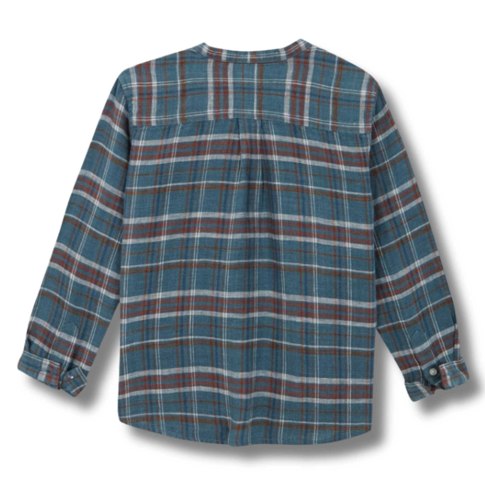 CHEMISE BLEUE À CARREAUX AVEC COL MAO-GOCCO