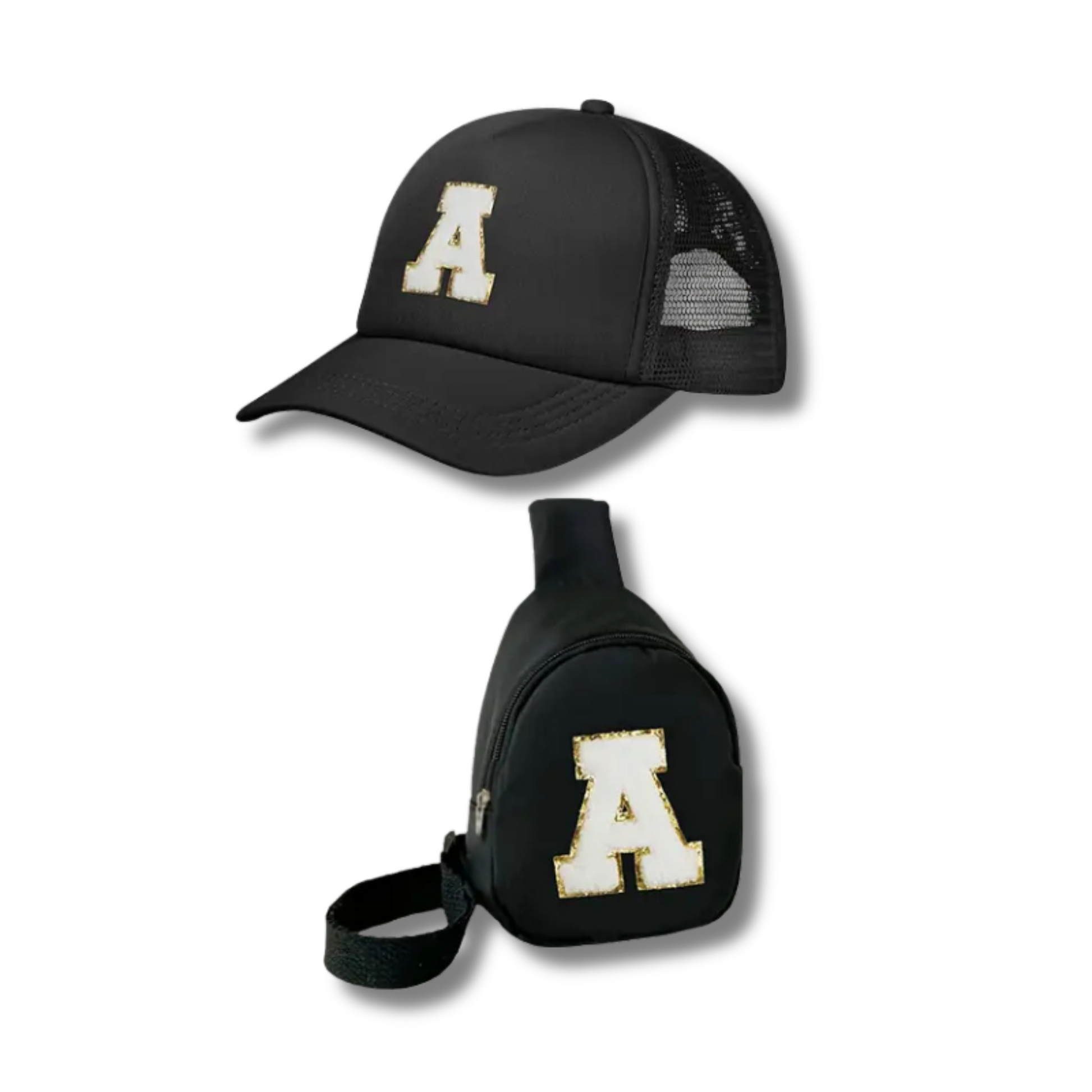 Sac Banane à Fermeture Éclair avec Sangle Réglable et Imprimé Lettre A, Casquette de Baseball Respirante en Maille, Style Décontracté